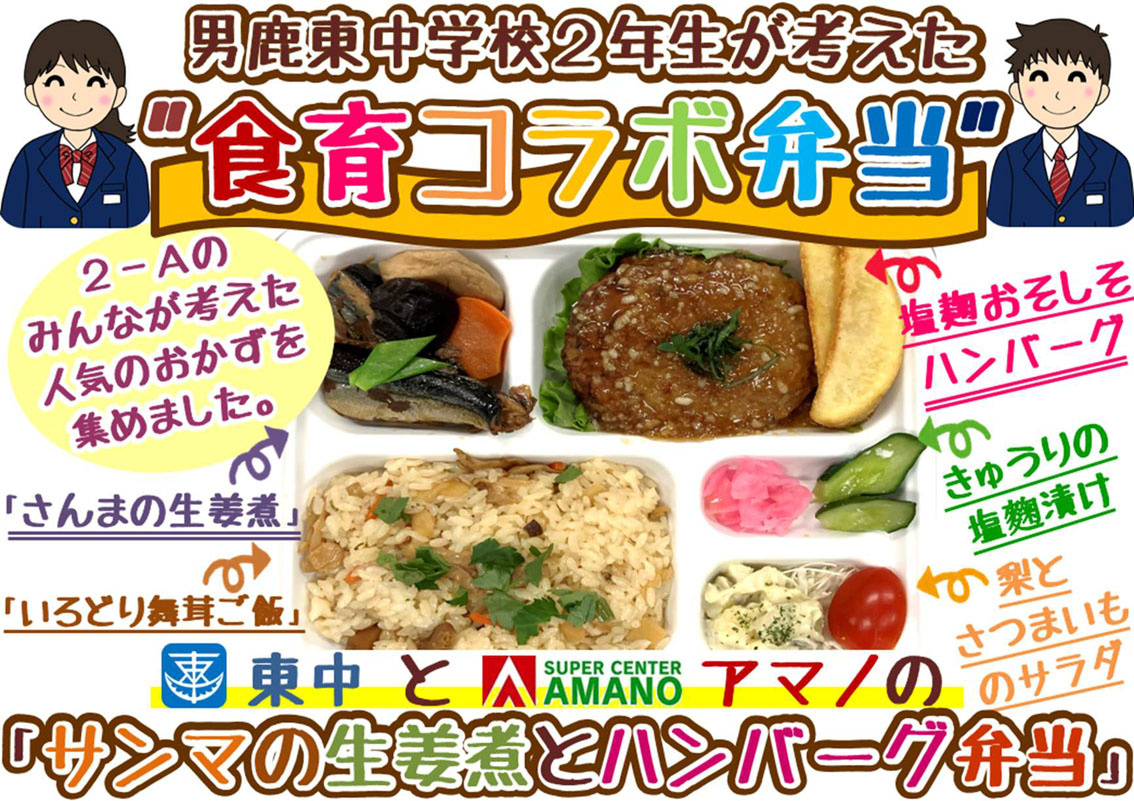 男鹿東中学校とアマノが共同開発した「食育コラボ弁当」を男鹿店限定で販売中!