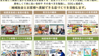 アマノからのお知らせ 「食育パーパス」が農林水産省のサイトに掲載されました。 このたび、弊社の「食育パーパス」が農林水産省のサイトに掲載されました。 今後もスーパーセンターアマノは食を通じて健康と豊かな消費生活を提案する 「食育コミュニケーション活動」に取り組み、SDGsの達成や、 地域社会とお客様へ貢献できる店づく... 2025.10.02 アマノからのお知らせ