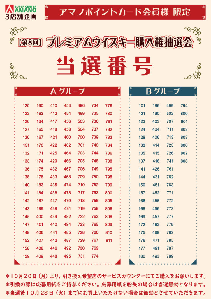 プレミアムウイスキー 当選番号