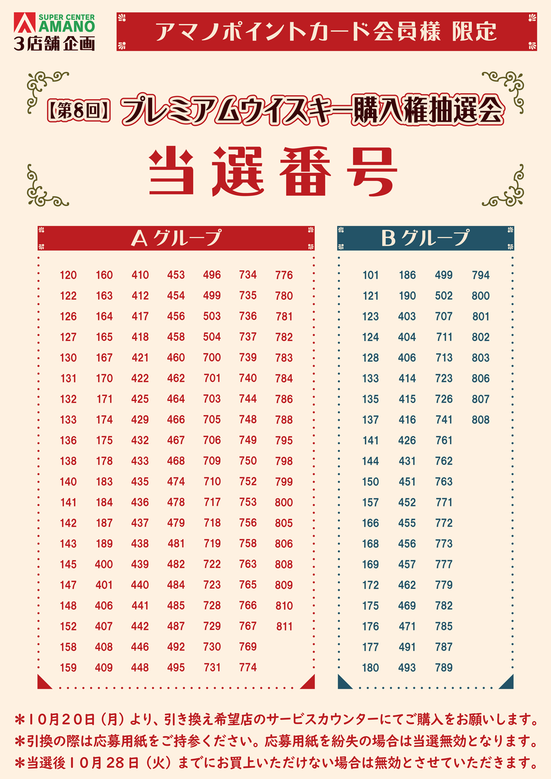 10/28(火)までに引き換え希望店のサービスカウンターにてご購入ください。