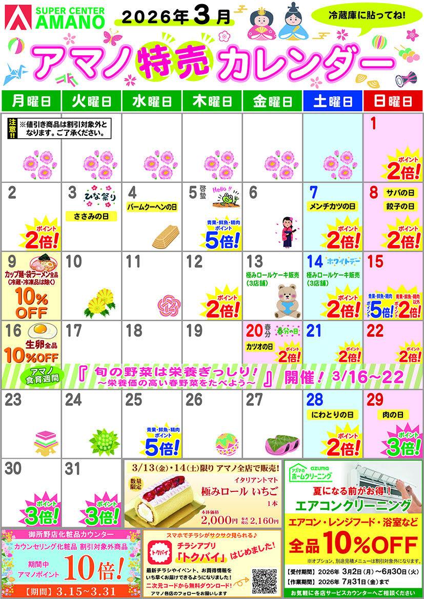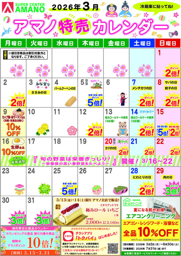 3月アマノ特売カレンダー