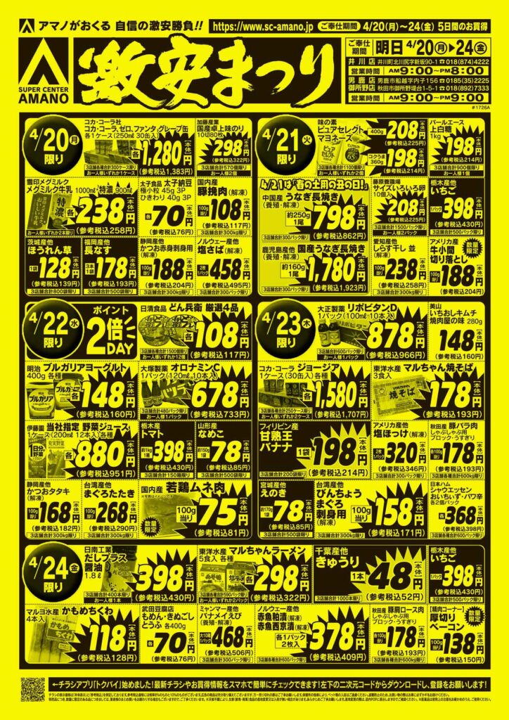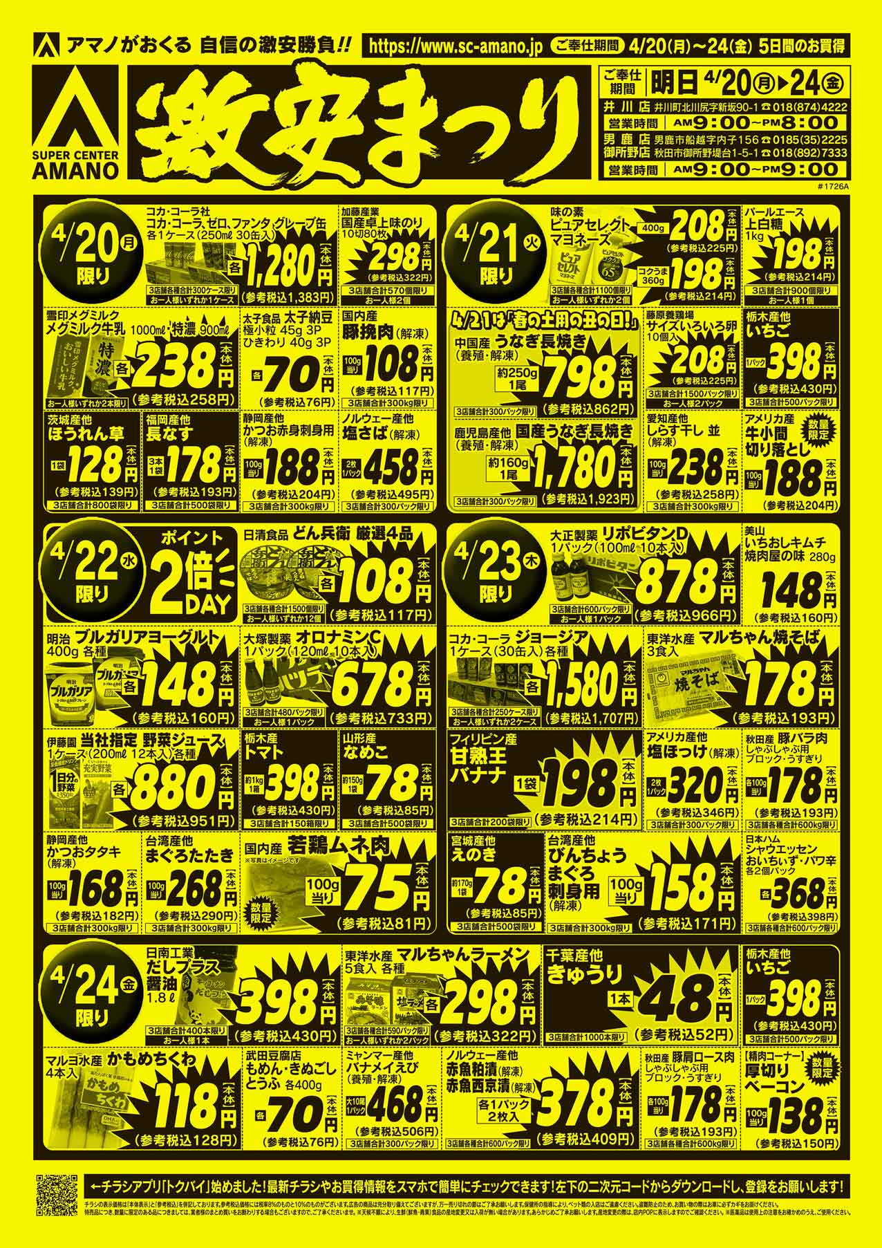 4/20(月)~4/24(金) 5日間のお買い得!